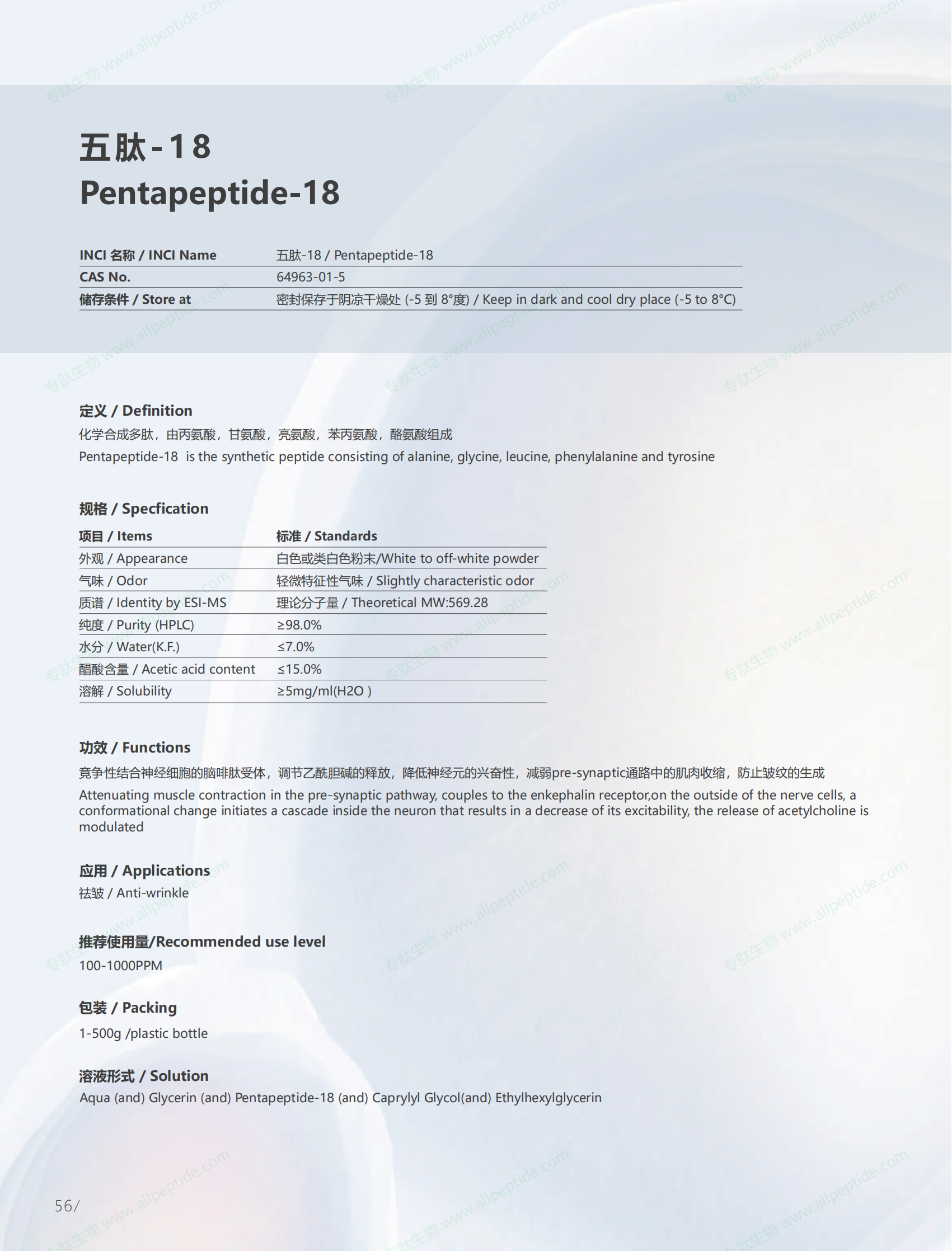 | 中文名称: | (D-ALA2)-亮氨酸脑啡肽、[DAla2]-Leu-Enkephalin、Pentapeptide-18 |