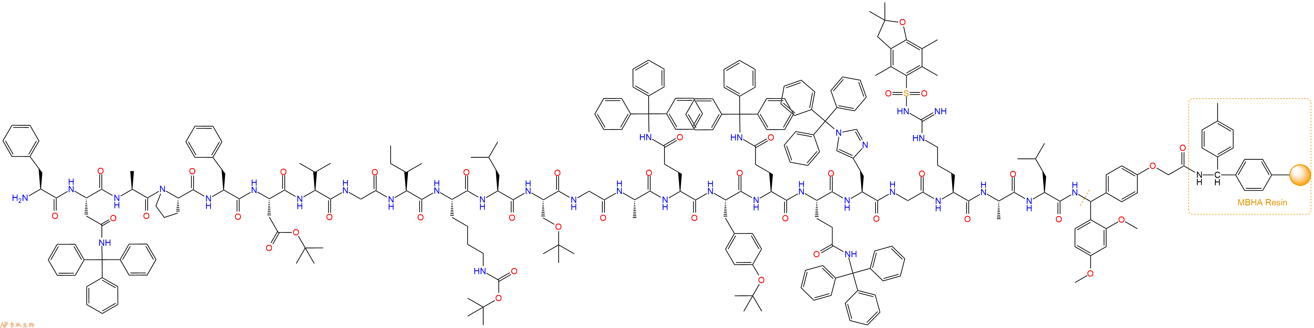 Fmoc-Phe-Asn(Trt)-Ala-Pro-Phe-Asp(OtBu)-Val-Gly-Ile-Lys(Boc)-Leu-Ser(tBu)-Gly-Ala-Gln(Trt)-Tyr(tBu)-Gln(Trt)-Gln(Trt)-His(Trt)-Gly-Arg(Pbf)-Ala-Leu-Linker-MBHA Resin