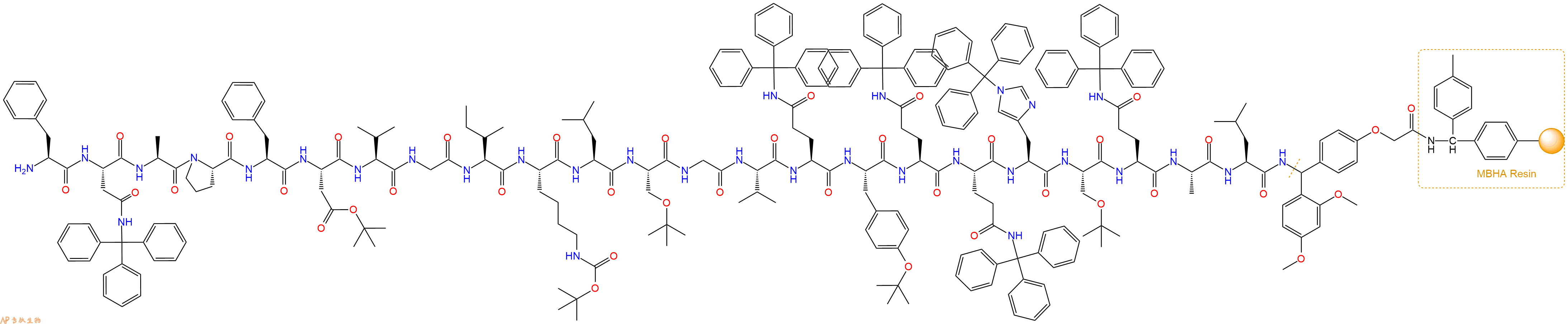 Fmoc-Phe-Asn(Trt)-Ala-Pro-Phe-Asp(OtBu)-Val-Gly-Ile-Lys(Boc)-Leu-Ser(tBu)-Gly-Val-Gln(Trt)-Tyr(tBu)-Gln(Trt)-Gln(Trt)-His(Trt)-Ser(tBu)-Gln(Trt)-Ala-Leu-Linker-MBHA Resin