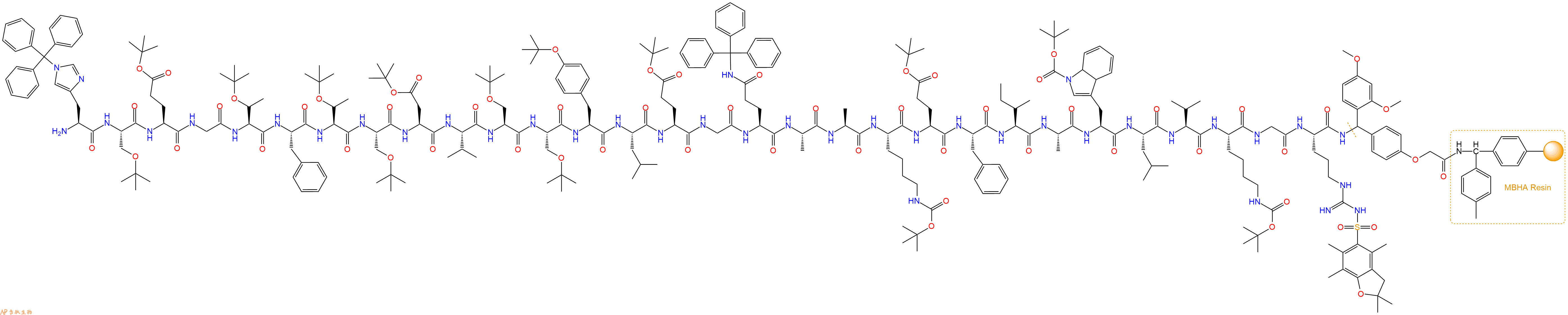 Fmoc-Ser(tBu)-Ser(tBu)-Tyr(tBu)-Leu-Glu(OtBu)-Gly-Gln(Trt)-Ala-Ala-Lys(Boc)-Glu(OtBu)-Phe-Ile-Ala-Trp(Boc)-Leu-Val-Lys(Boc)-Gly-Arg(Pbf)-Linker-MBHA Resin