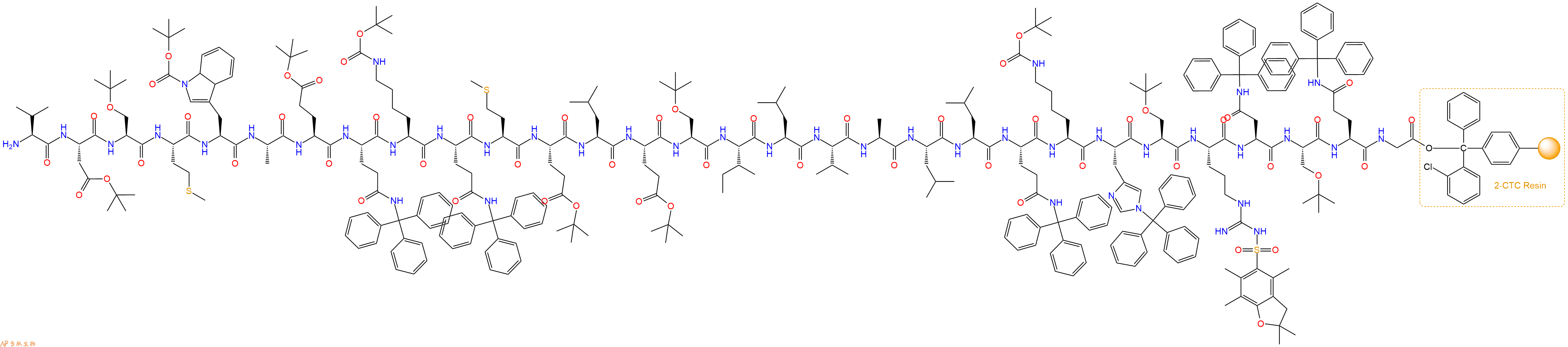 Fmoc-Val-Asp(OtBu)-Ser(tBu)-Met-Trp(Boc)-Ala-Glu(OtBu)-Gln(Trt)-Lys(Boc)-Gln(Trt)-Met-Glu(OtBu)-Leu-Glu(OtBu)-Ser(tBu)-Ile-Leu-Val-Ala-Leu-Leu-Gln(Trt)-Lys(Boc)-His(Trt)-Ser(tBu)-Arg(Pbf)-Asn(Trt)-Ser(tBu)-Gln(Trt)-Gly-CTC Resin