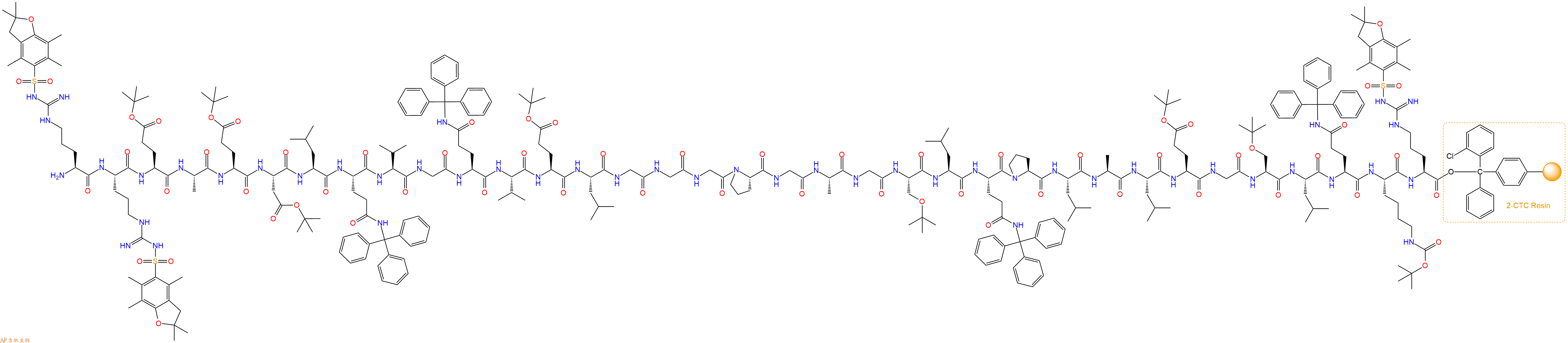 Fmoc-Arg(Pbf)-Arg(Pbf)-Glu(OtBu)-Ala-Glu(OtBu)-Asp(OtBu)-Leu-Gln(Trt)-Val-Gly-Gln(Trt)-Val-Glu(OtBu)-Leu-Gly-Gly-Gly-Pro-Gly-Ala-Gly-Ser(tBu)-Leu-Gln(Trt)-Pro-Leu-Ala-Leu-Glu(OtBu)-Gly-Ser(tBu)-Leu-Gln(Trt)-Lys(Boc)-Arg(Pbf)-CTC Resin