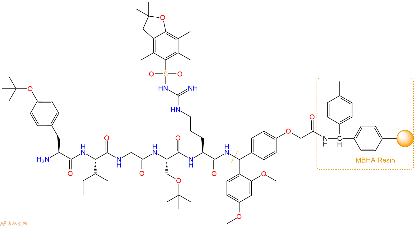 H2N-Ile-Gly-Ser(tBu)-Arg(Pbf)-Linker-MBHA Resin