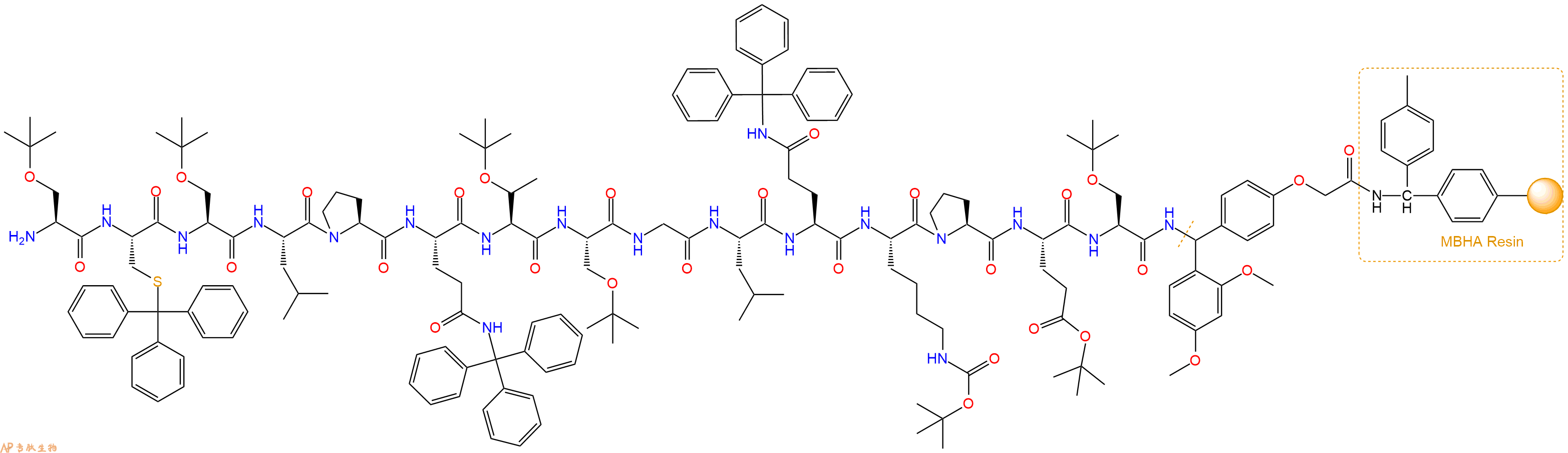 Fmoc-Leu-Pro-Gln(Trt)-Thr(tBu)-Ser(tBu)-Gly-Leu-Gln(Trt)-Lys(Boc)-Pro-Glu(OtBu)-Ser(tBu)-Linker-MBHA Resin