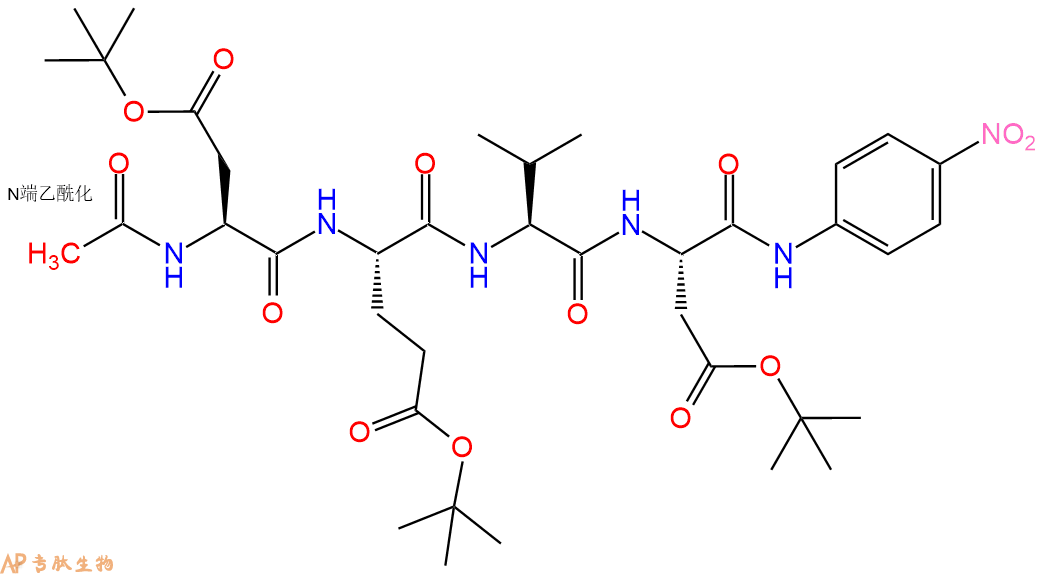 | 三字母: | Ac N端乙酰化封端,一种常见的修饰方式,常用于模拟蛋白质中的肽片段。 -AspL-天冬氨酸:aspartic acid。系统命名为(2S)-氨基-丁二酸。是编码氨基酸,又是神经递质。符号:D,Asp。D-天冬氨酸存在于多种细菌的细胞壁和短杆菌肽A中。 -GluL-谷氨酸:glutamic acid。系统命名为(2S)-氨基-戊二酸。是编码氨基酸。符号:E,Glu。D-谷氨酸存在于多种细菌的细胞壁和某些细菌杆菌肽中。 -ValL-缬氨酸:valine。系统命名为(2S)-氨基-3-甲基丁酸。是编码氨基酸。是哺乳动物的必需氨基酸。符号:V,Val。在某些放线菌素如缬霉素中存在 D-缬氨酸。 -AspL-天冬氨酸:aspartic acid。系统命名为(2S)-氨基-丁二酸。是编码氨基酸,又是神经递质。符号:D,Asp。D-天冬氨酸存在于多种细菌的细胞壁和短杆菌肽A中。 -pNA对硝基苯胺 |