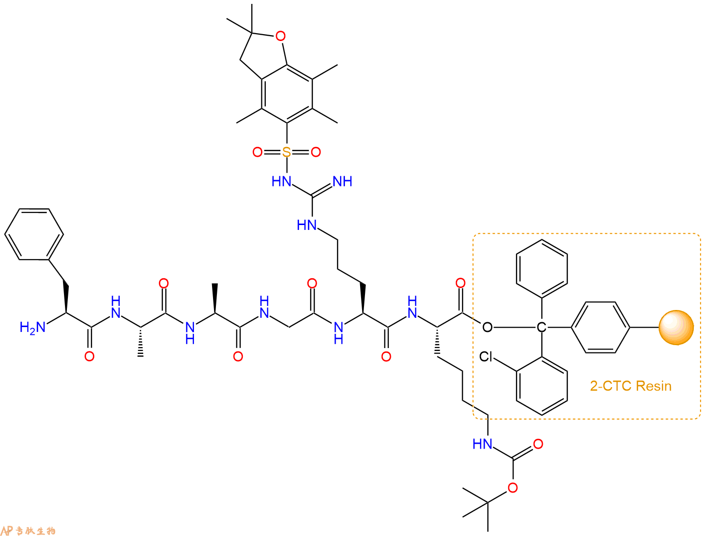 H2N-Ala-Ala-Gly-Arg(Pbf)-Lys(Boc)-CTC Resin