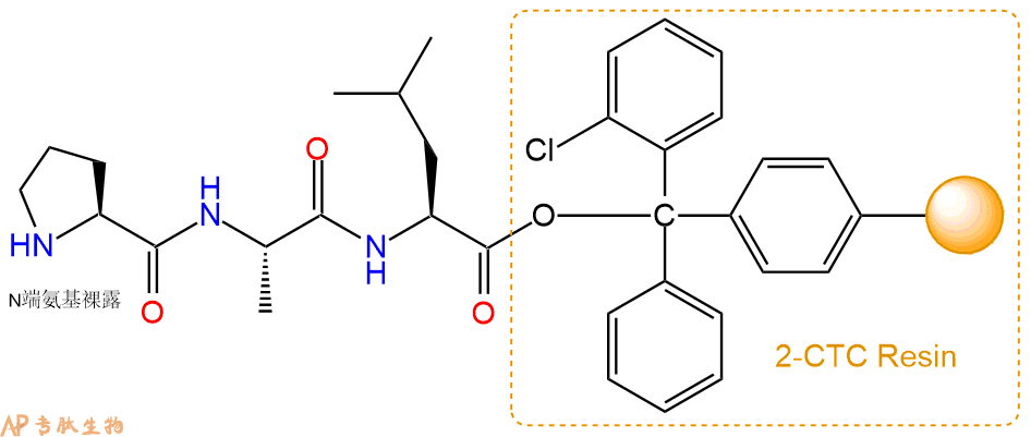 最后再经过步骤二得到 H2N-Pro-Ala-Leu-CTC Resin,结构如下: