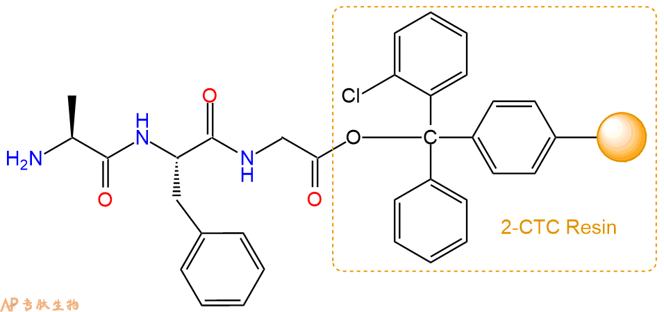 最后再经过步骤二得到 H2N-Ala-Phe-Gly-CTC Resin,结构如下: