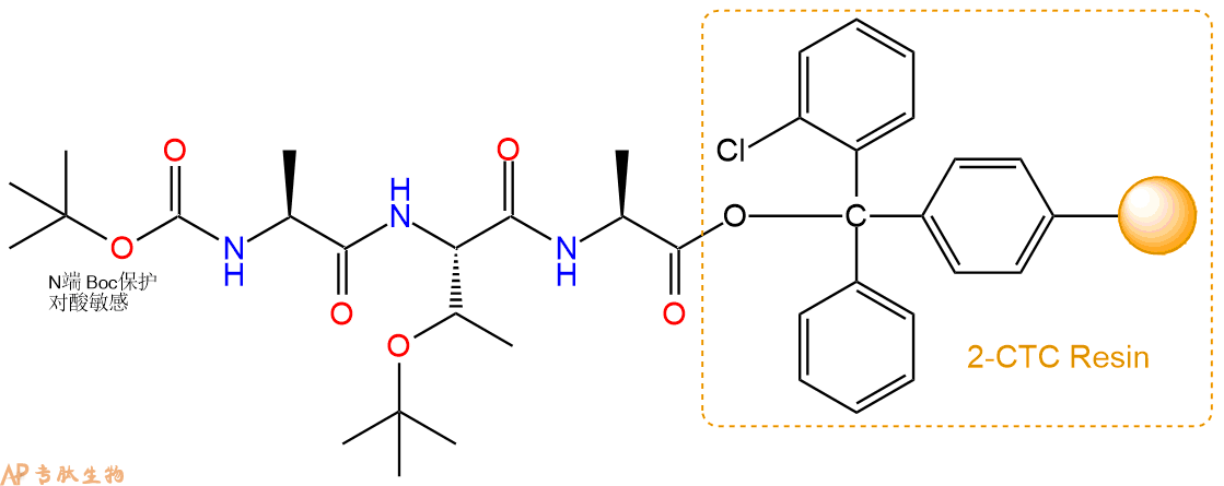 最后再经过步骤二得到 H2N-Ala-Thr(tBu)-Ala-CTC Resin,结构如下: