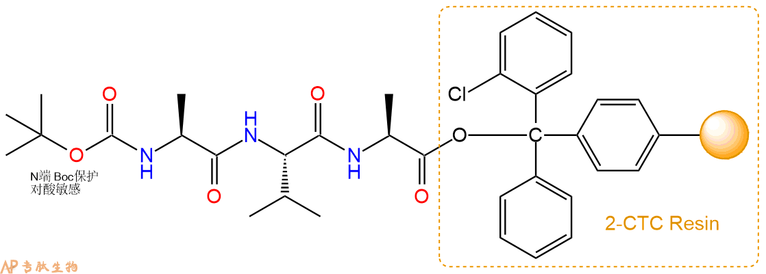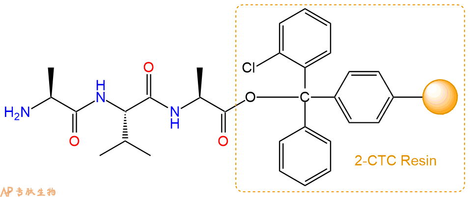 最后再经过步骤二得到 H2N-Ala-Val-Ala-CTC Resin,结构如下: