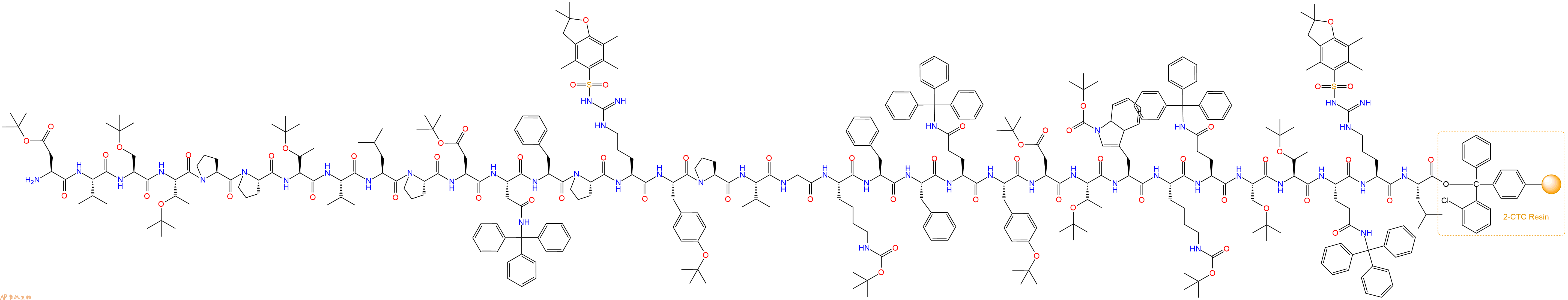 Fmoc-Pro-Arg(Pbf)-Tyr(tBu)-Pro-Val-Gly-Lys(Boc)-Phe-Phe-Gln(Trt)-Tyr(tBu)-Asp(OtBu)-Thr(tBu)-Trp(Boc)-Lys(Boc)-Gln(Trt)-Ser(tBu)-Thr(tBu)-Gln(Trt)-Arg(Pbf)-Leu-CTC Resin