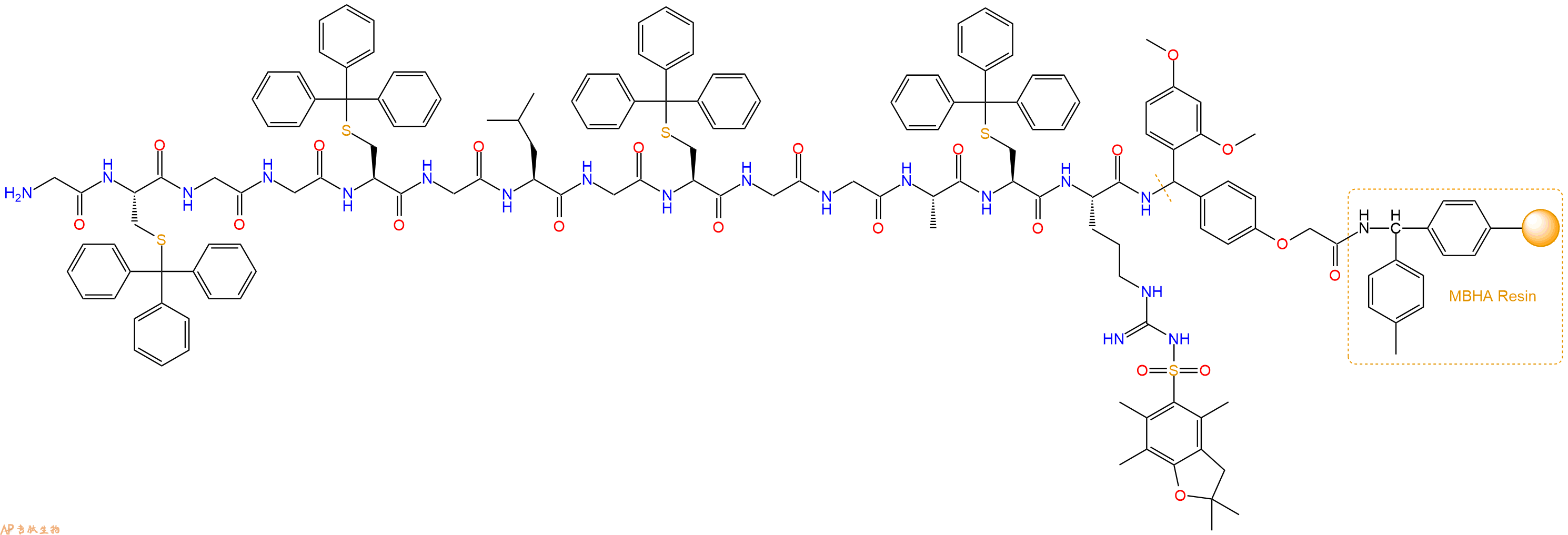 H2N-Gly-Ala-Cys(Trt)-Arg(Pbf)-Linker-MBHA Resin