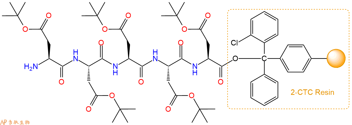 最后再经过步骤二得到 H2N-Asp(OtBu)-Asp(OtBu)-Asp(OtBu)-Asp(OtBu)-Asp(OtBu)-CTC Resin,结构如下: