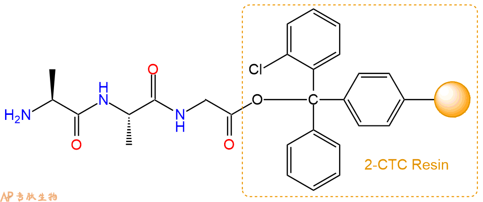 最后再经过步骤二得到 H2N-Ala-Ala-Gly-CTC Resin,结构如下: