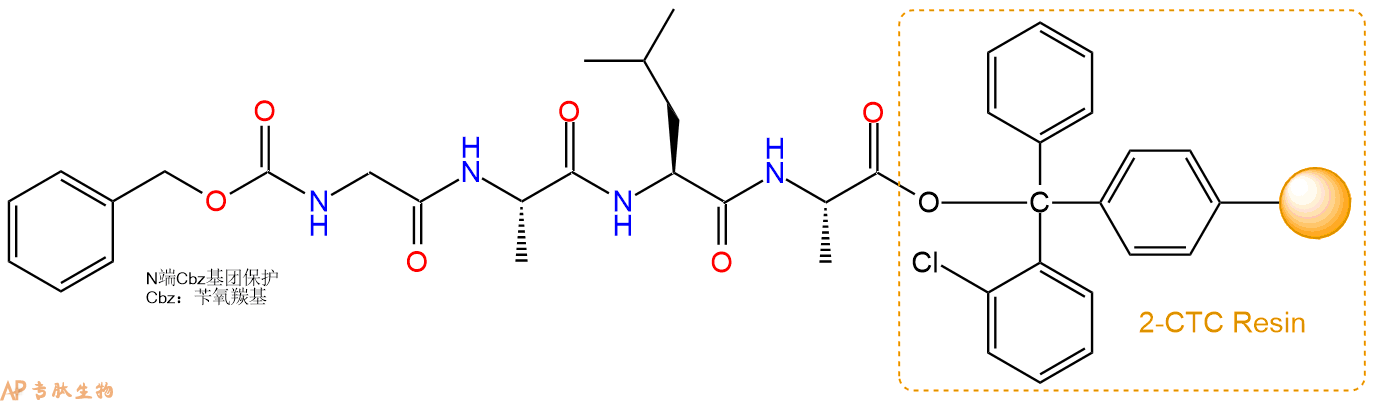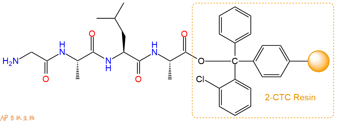最后再经过步骤二得到 H2N-Gly-Ala-Leu-Ala-CTC Resin,结构如下: