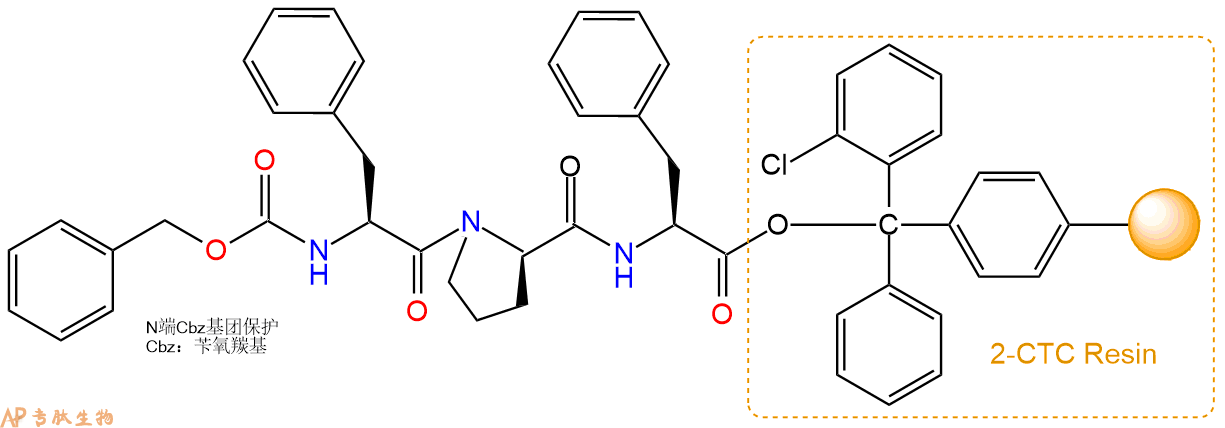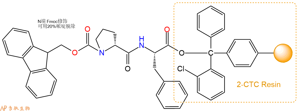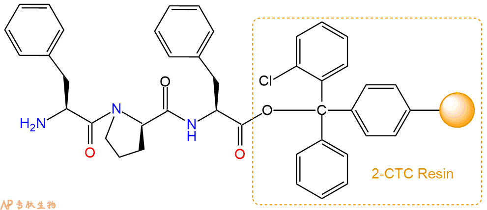 最后再经过步骤二得到 H2N-Phe-DPro-Phe-CTC Resin,结构如下: