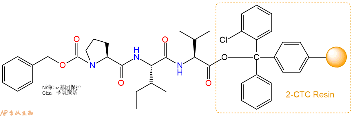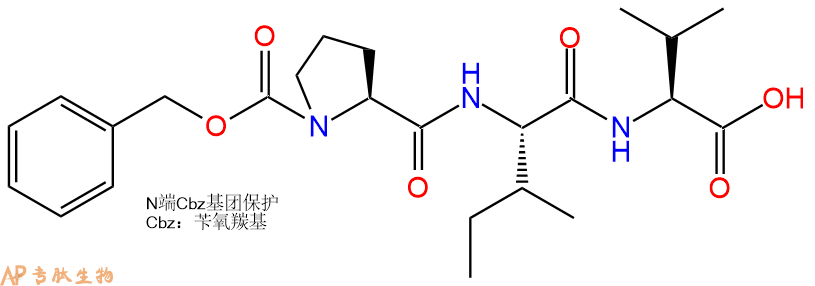 | 三字母: | Cbz N端Cbz保护,苄氧羰基(Cbz,Z) -ProL-脯氨酸:proline。系统命名为吡咯烷-(2S)-羧酸。为亚氨基酸。是编码氨基酸。在肽链中有特殊作用,如易形成顺式的肽键等。符号:P,Pro。 -IleL-异亮氨酸:isoleucine。系统命名为(2S)-氨基-(3R)-甲基戊酸。是编码氨基酸。有两个手性碳原子,是哺乳动物的必需氨基酸。符号:I,Ile。 -ValL-缬氨酸:valine。系统命名为(2S)-氨基-3-甲基丁酸。是编码氨基酸。是哺乳动物的必需氨基酸。符号:V,Val。在某些放线菌素如缬霉素中存在 D-缬氨酸。 -OMeC端甲酯化修饰,甲酯是最简单的酯类,在溶液合成中作为重要的半永久性C端保护基团。它们可以转化为肽肼,而肽肼是反应性肽叠氮化物的先驱体。叠氮偶联仍是肽溶液合成中片段偶联最常用的方法。 |