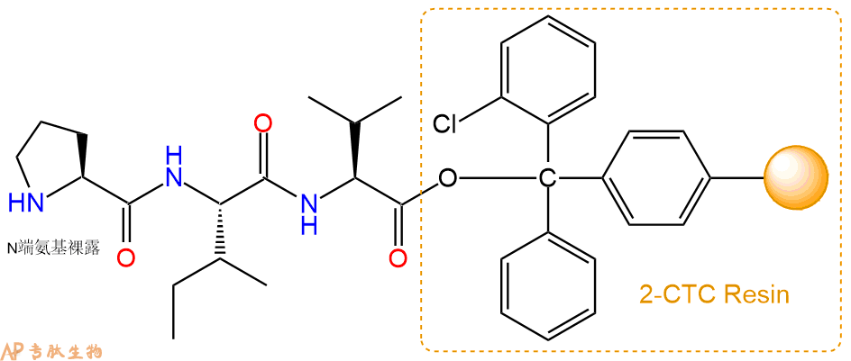 最后再经过步骤二得到 H2N-Pro-Ile-Val-CTC Resin,结构如下: