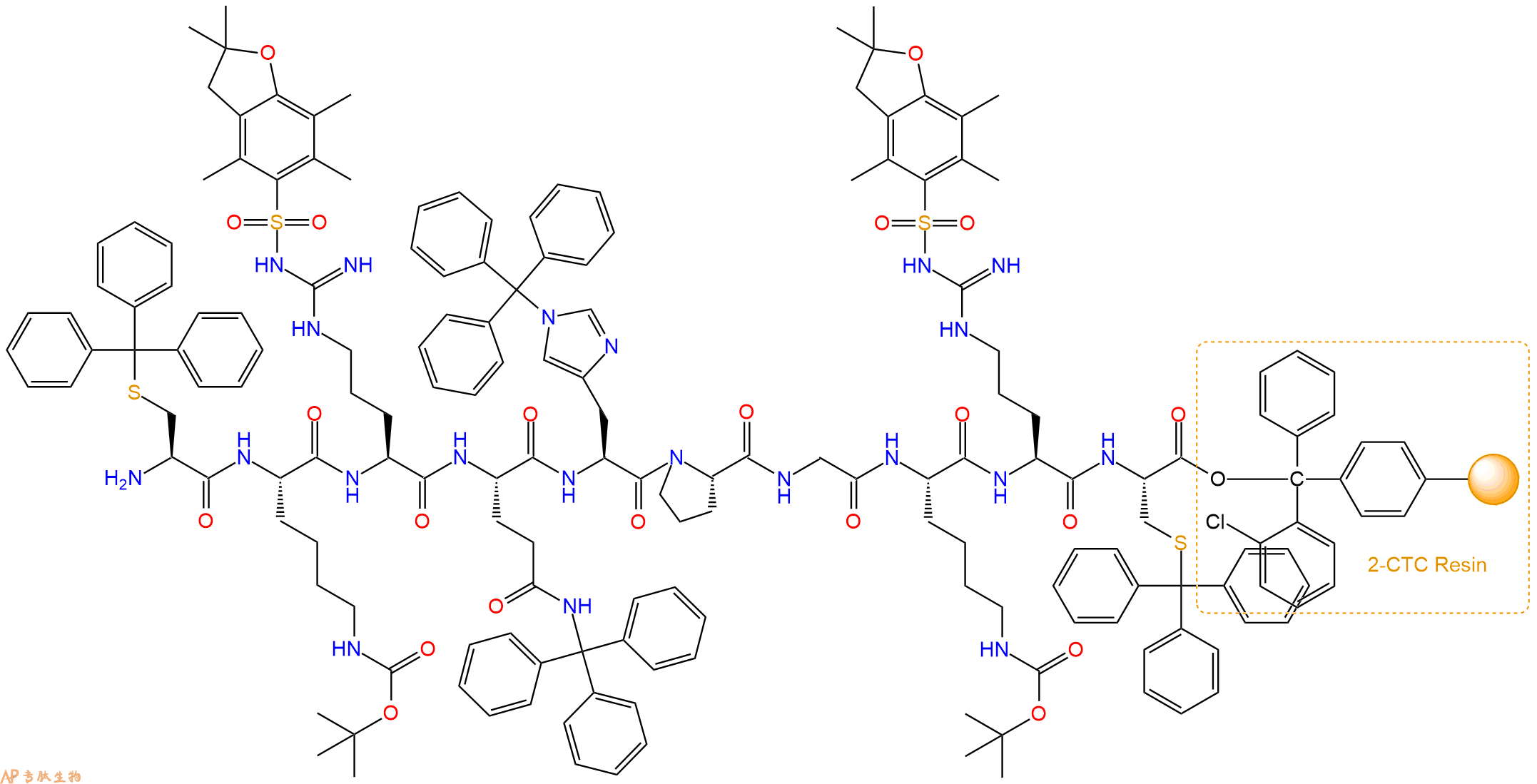 H2N-Arg(Pbf)-Gln(Trt)-His(Trt)-Pro-Gly-Lys(Boc)-Arg(Pbf)-Cys(Trt)-CTC Resin