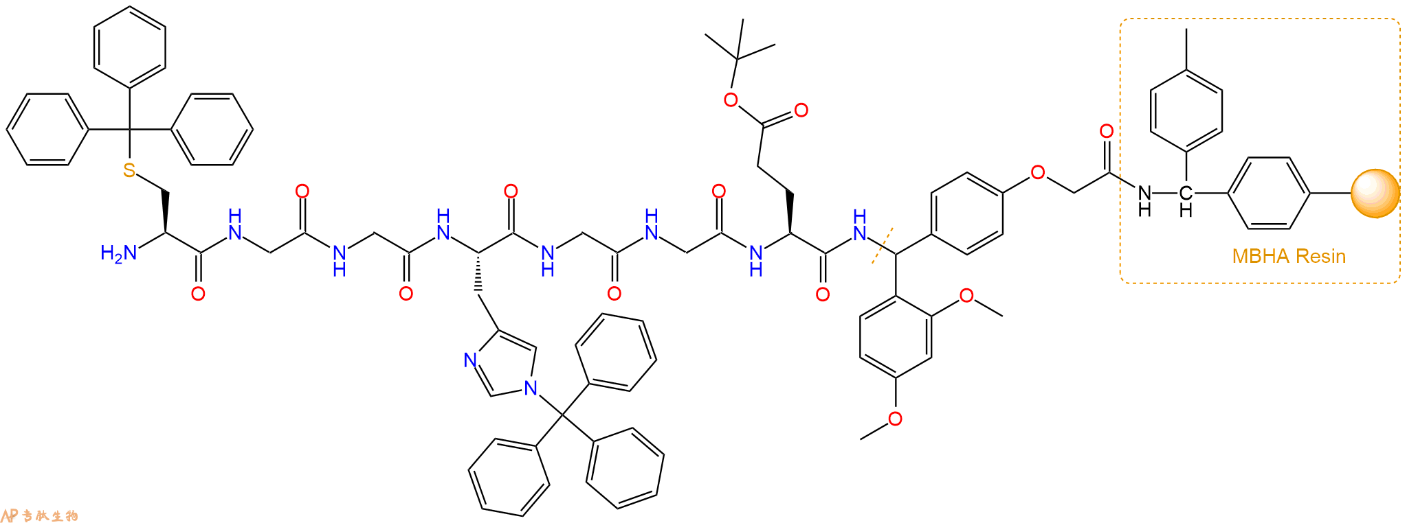 H2N-Gly-Gly-His(Trt)-Gly-Gly-Glu(OtBu)-Linker-MBHA Resin