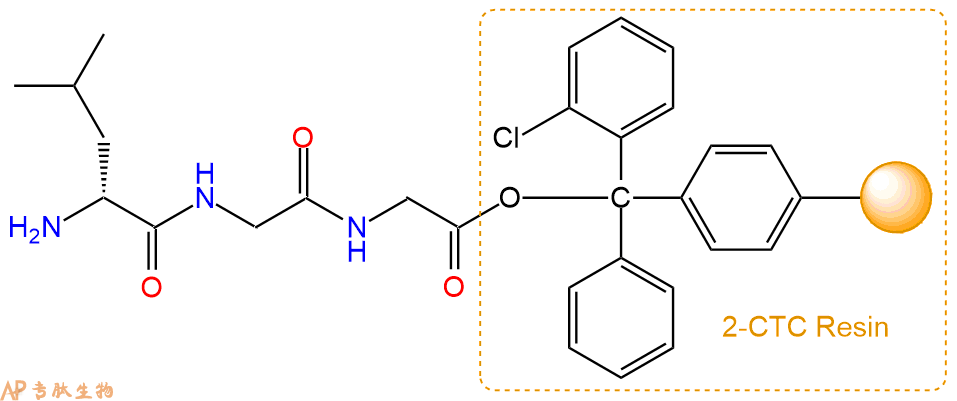 最后再经过步骤二得到 H2N-DLeu-Gly-Gly-CTC Resin,结构如下: