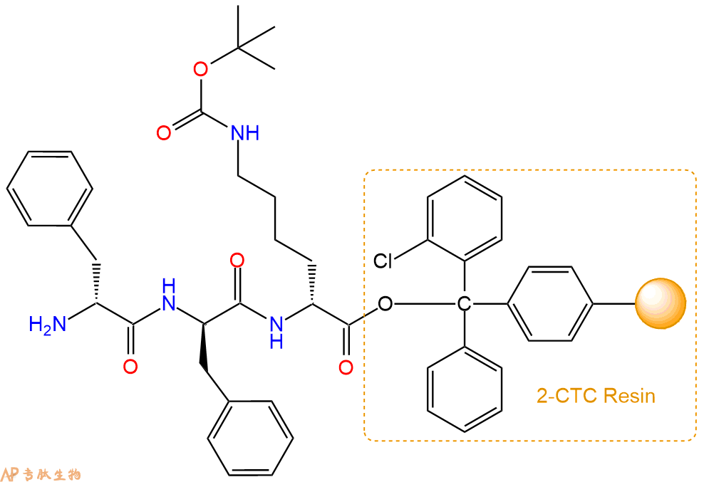 最后再经过步骤二得到 H2N-DPhe-DPhe-DLys(Boc)-CTC Resin,结构如下:
