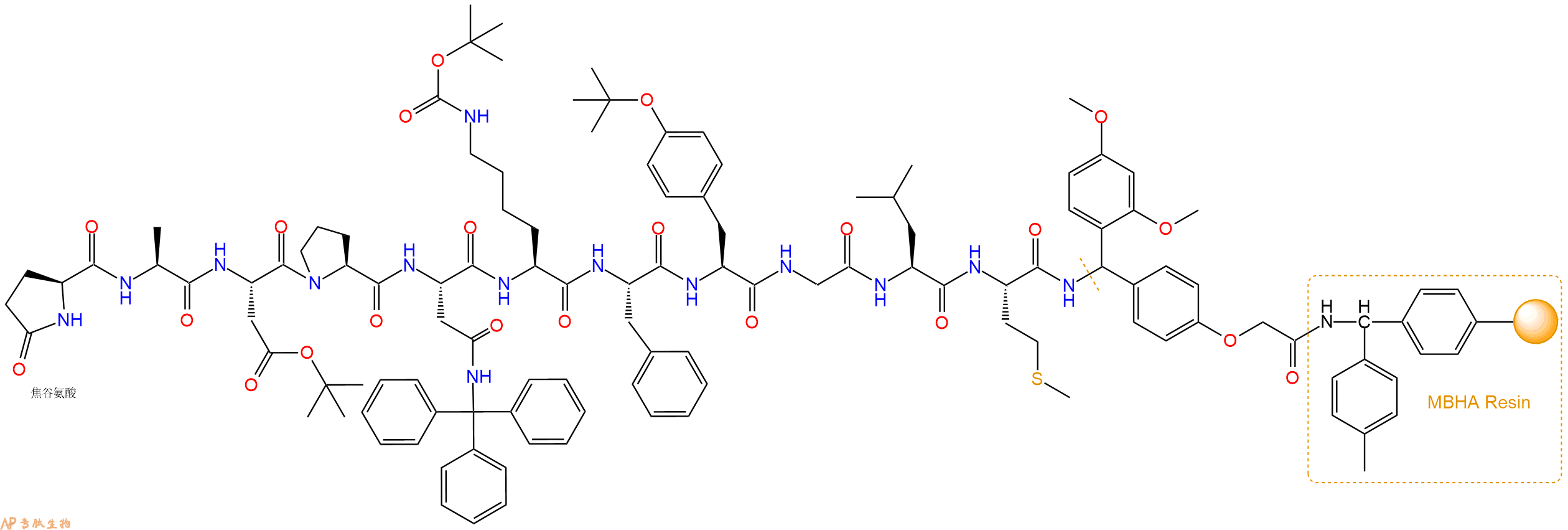 Fmoc-Ala-Asp(OtBu)-Pro-Asn(Trt)-Lys(Boc)-Phe-Tyr(tBu)-Gly-Leu-Met-Linker-MBHA Resin