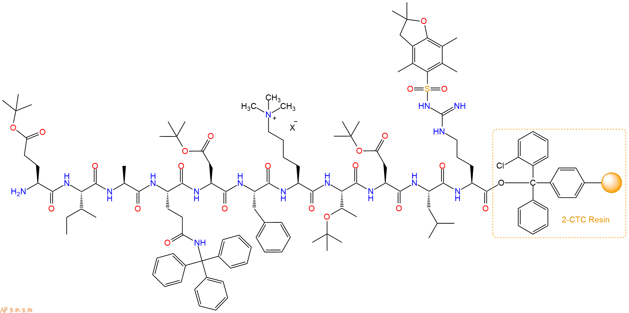 H2N-Ala-Gln(Trt)-Asp(OtBu)-Phe-Lys(Me)3-Thr(tBu)-Asp(OtBu)-Leu-Arg(Pbf)-CTC Resin