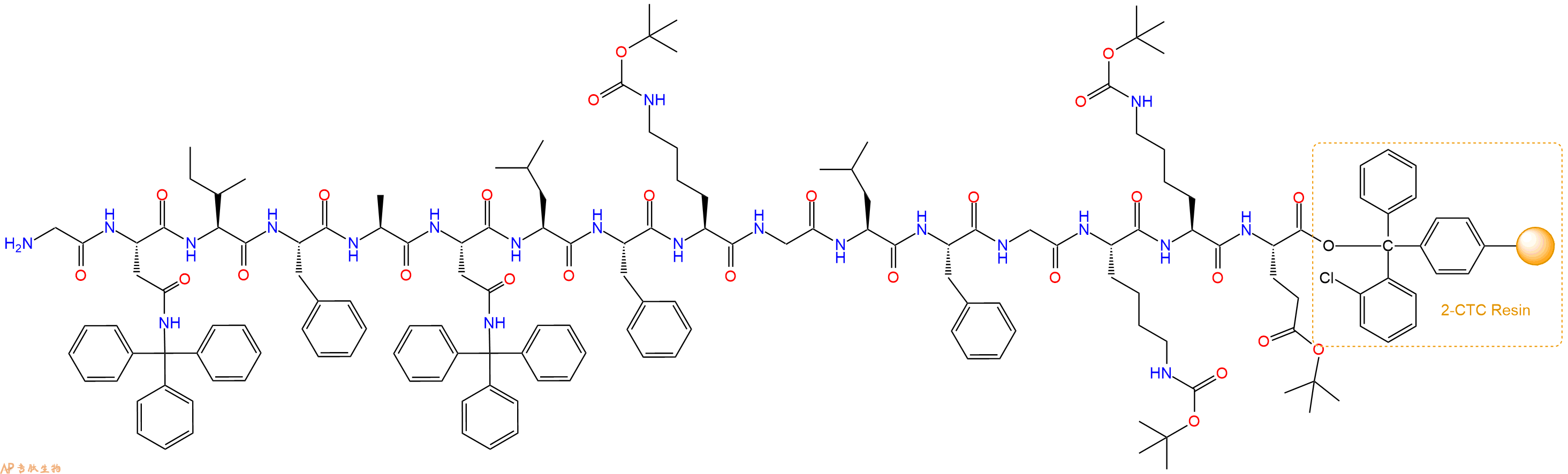 H2N-Ala-Asn(Trt)-Leu-Phe-Lys(Boc)-Gly-Leu-Phe-Gly-Lys(Boc)-Lys(Boc)-Glu(OtBu)-CTC Resin
