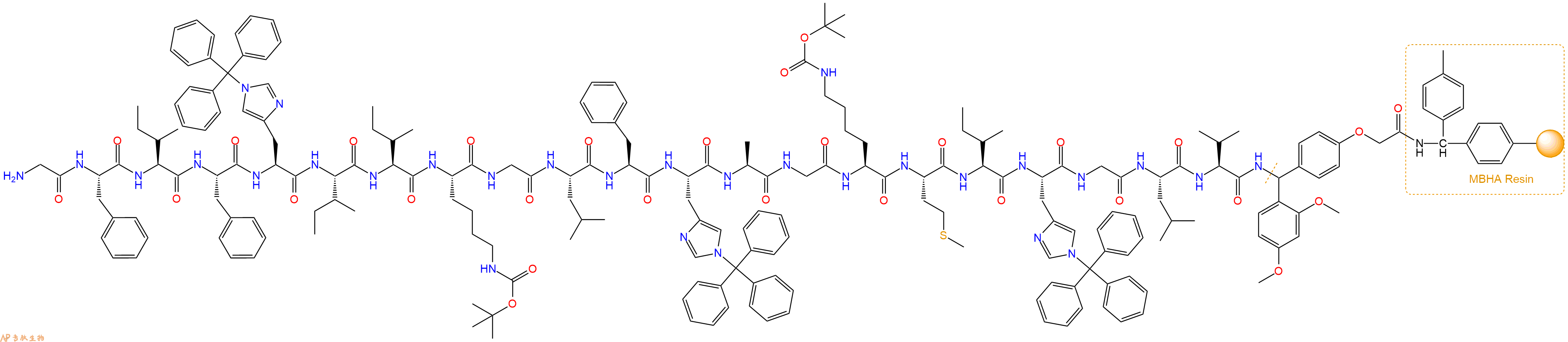 Fmoc-Phe-His(Trt)-Ile-Ile-Lys(Boc)-Gly-Leu-Phe-His(Trt)-Ala-Gly-Lys(Boc)-Met-Ile-His(Trt)-Gly-Leu-Val-Linker-MBHA Resin