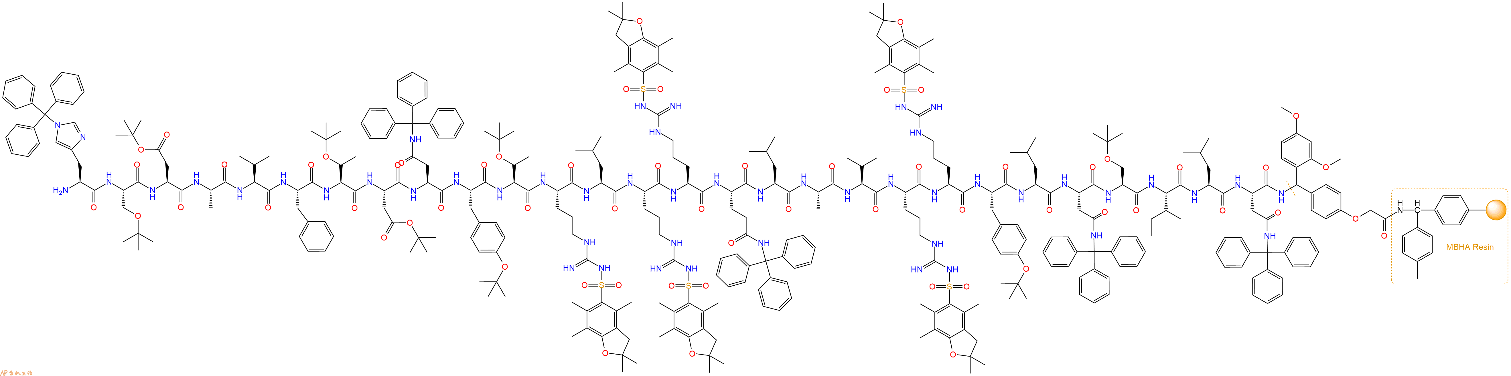Fmoc-Leu-Ala-Val-Arg(Pbf)-Arg(Pbf)-Tyr(tBu)-Leu-Asn(Trt)-Ser(tBu)-Ile-Leu-Asn(Trt)-Linker-MBHA Resin