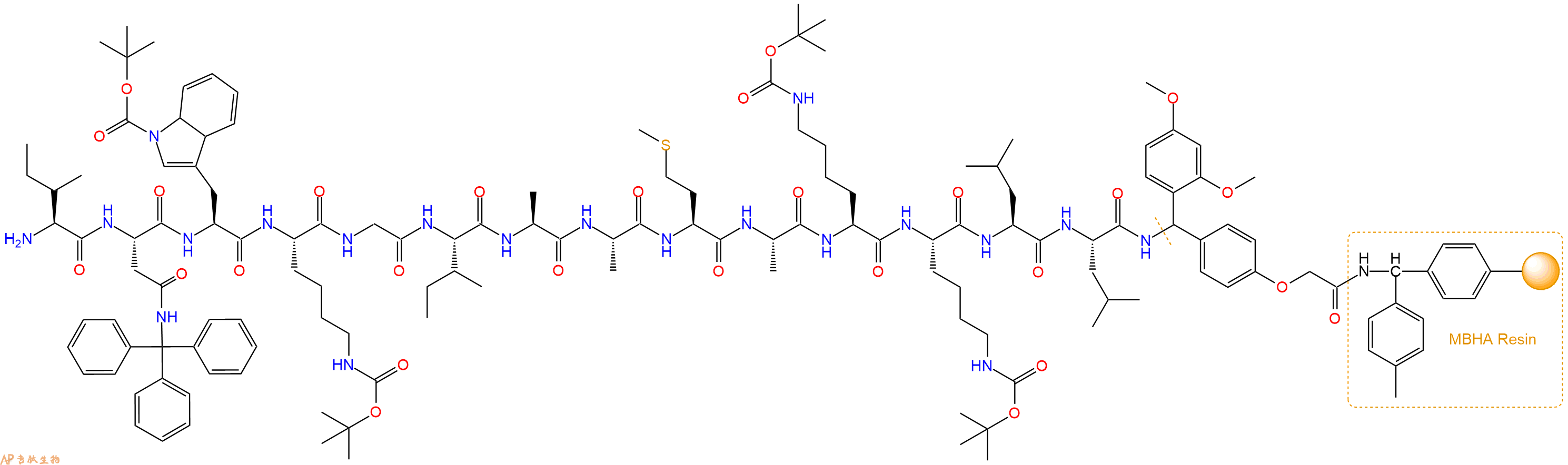 H2N-Asn(Trt)-Trp(Boc)-Lys(Boc)-Gly-Ile-Ala-Ala-Met-Ala-Lys(Boc)-Lys(Boc)-Leu-Leu-Linker-MBHA Resin