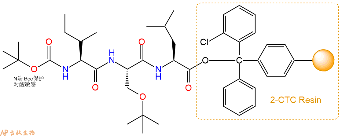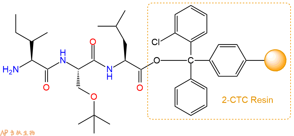 最后再经过步骤二得到 H2N-Ile-Ser(tBu)-Leu-CTC Resin,结构如下: