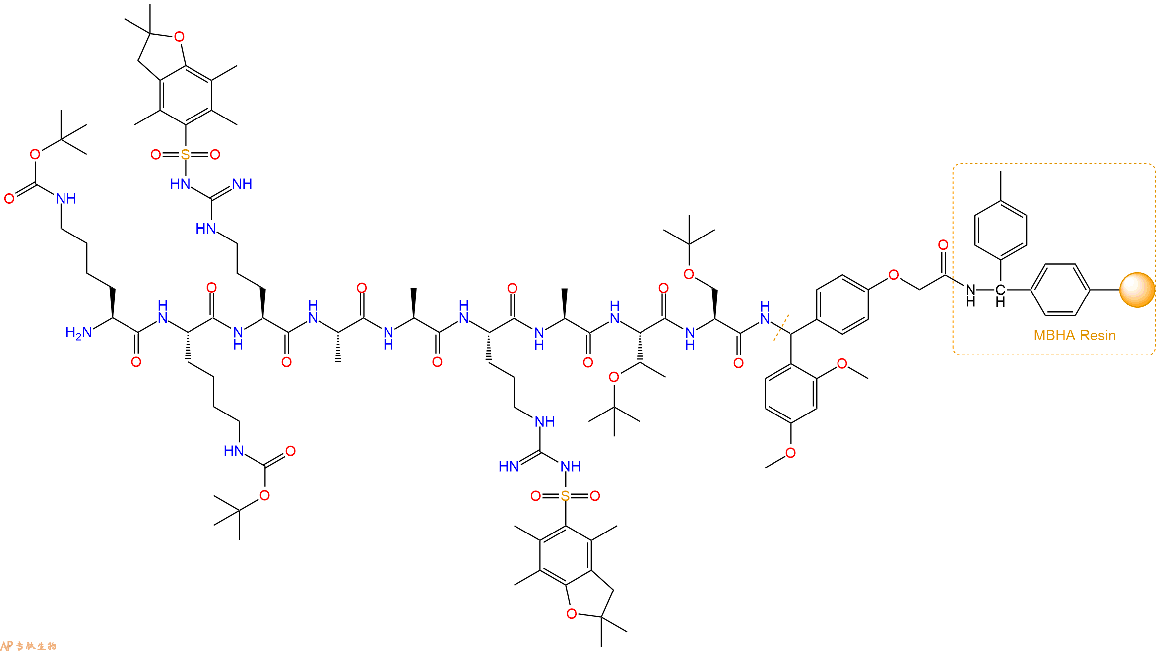 Fmoc-Lys(Boc)-Arg(Pbf)-Ala-Ala-Arg(Pbf)-Ala-Thr(tBu)-Ser(tBu)-Linker-MBHA Resin