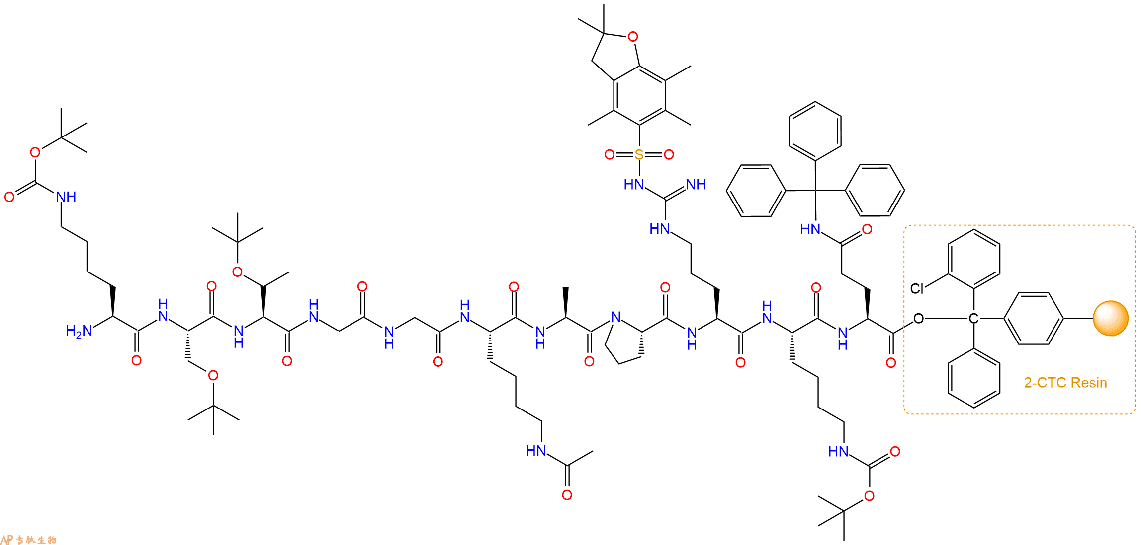 H2N-Lys(Ac)-Ala-Pro-Arg(Pbf)-Lys(Boc)-Gln(Trt)-CTC Resin