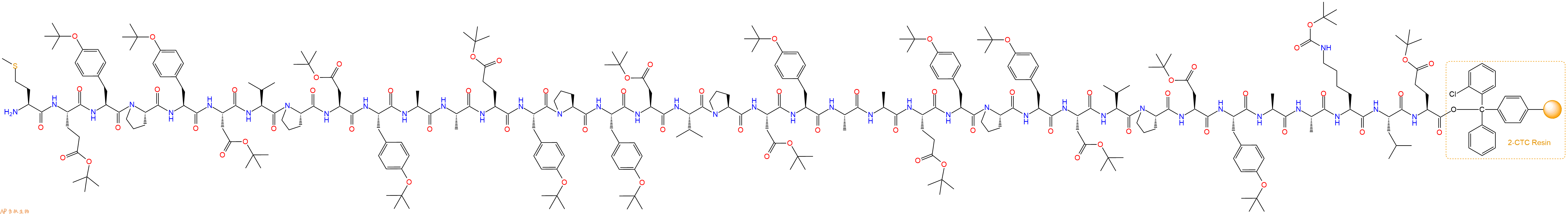 H2N-Asp(OtBu)-Val-Pro-Asp(OtBu)-Tyr(tBu)-Ala-Ala-Glu(OtBu)-Tyr(tBu)-Pro-Tyr(tBu)-Asp(OtBu)-Val-Pro-Asp(OtBu)-Tyr(tBu)-Ala-Ala-Glu(OtBu)-Tyr(tBu)-Pro-Tyr(tBu)-Asp(OtBu)-Val-Pro-Asp(OtBu)-Tyr(tBu)-Ala-Ala-Lys(Boc)-Leu-Glu(OtBu)-CTC Resin