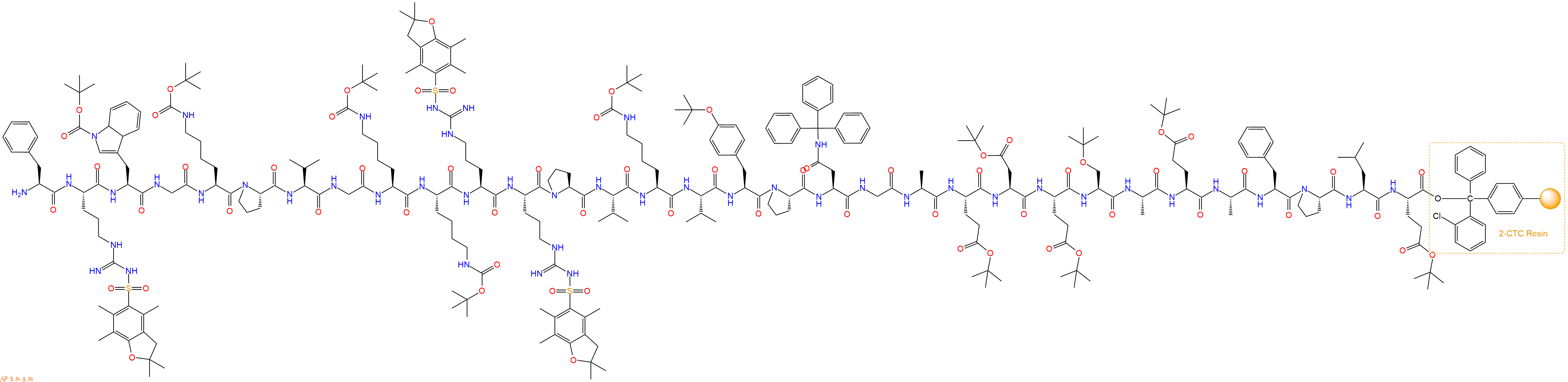 H2N-Arg(Pbf)-Trp(Boc)-Gly-Lys(Boc)-Pro-Val-Gly-Lys(Boc)-Lys(Boc)-Arg(Pbf)-Arg(Pbf)-Pro-Val-Lys(Boc)-Val-Tyr(tBu)-Pro-Asn(Trt)-Gly-Ala-Glu(OtBu)-Asp(OtBu)-Glu(OtBu)-Ser(tBu)-Ala-Glu(OtBu)-Ala-Phe-Pro-Leu-Glu(OtBu)-CTC Resin
