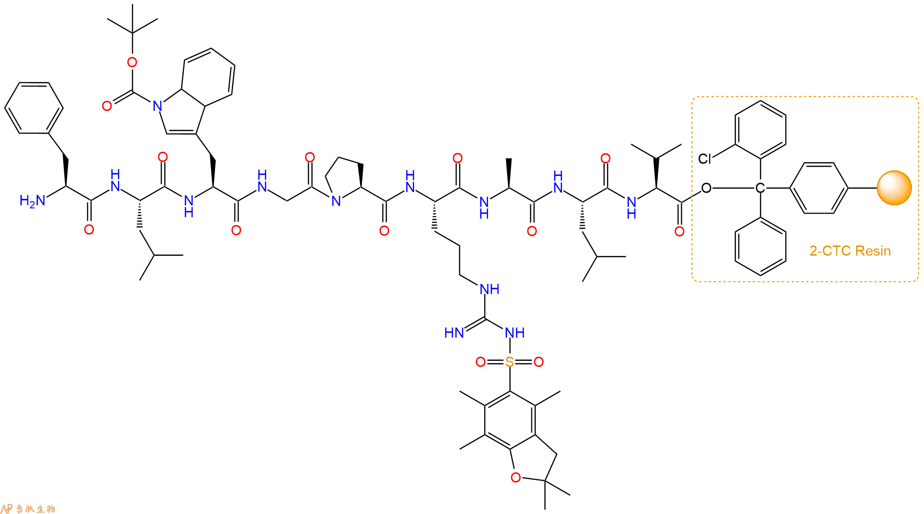 Fmoc-Phe-Leu-Trp(Boc)-Gly-Pro-Arg(Pbf)-Ala-Leu-Val-CTC Resin