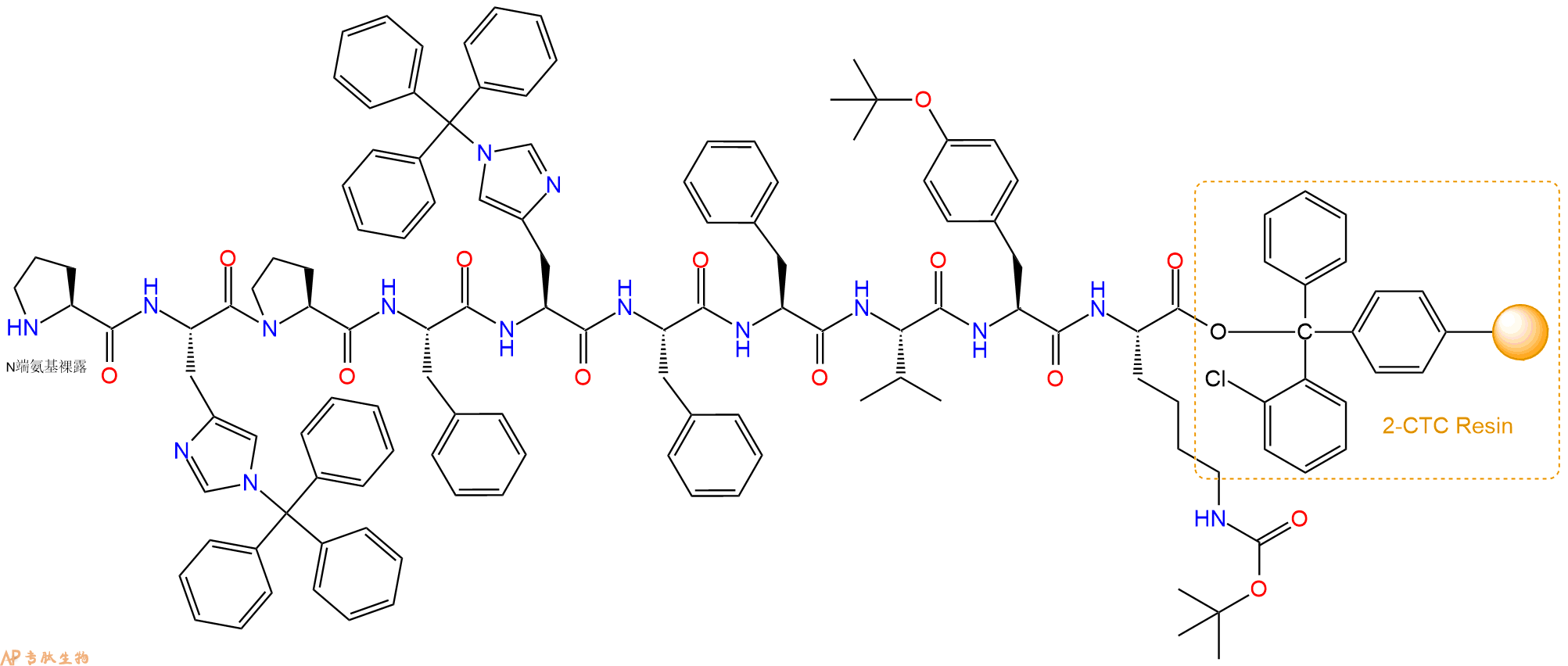H2N-His(Trt)-Pro-Phe-His(Trt)-Phe-Phe-Val-Tyr(tBu)-Lys(Boc)-CTC Resin