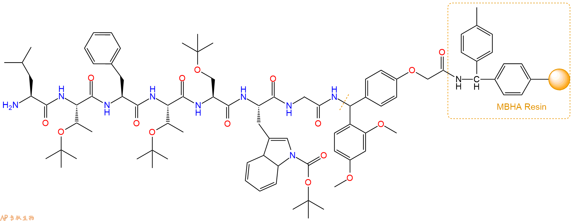 H2N-Phe-Thr(tBu)-Ser(tBu)-Trp(Boc)-Gly-Linker-MBHA Resin