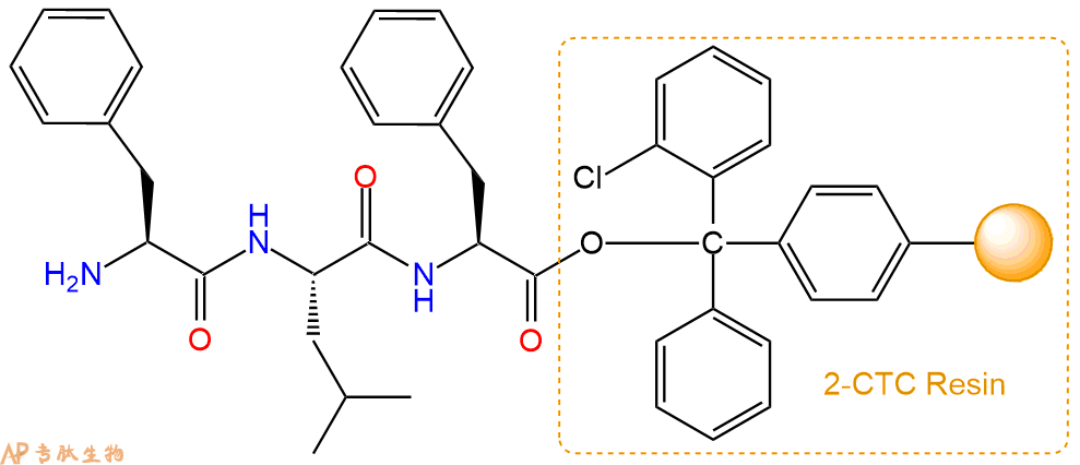 最后再经过步骤二得到 H2N-Phe-Leu-Phe-CTC Resin,结构如下: