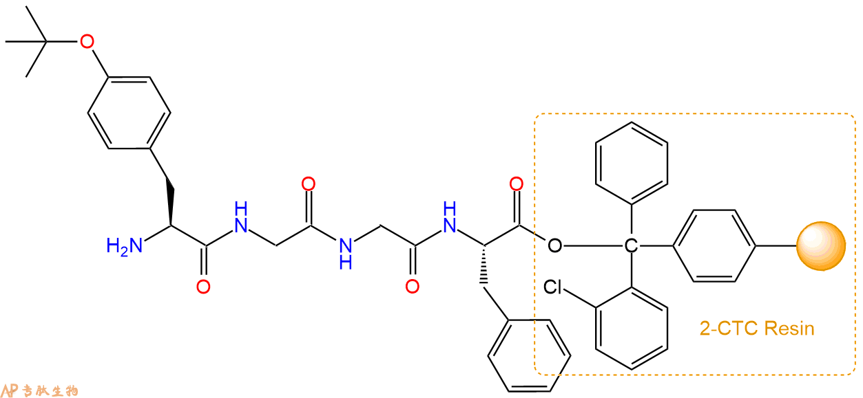 最后再经过步骤二得到 H2N-Tyr(tBu)-Gly-Gly-Phe-CTC Resin,结构如下: