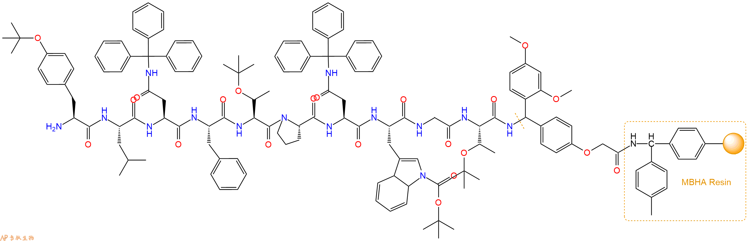 H2N-Leu-Asn(Trt)-Phe-Thr(tBu)-Pro-Asn(Trt)-Trp(Boc)-Gly-Thr(tBu)-Linker-MBHA Resin