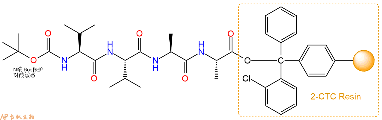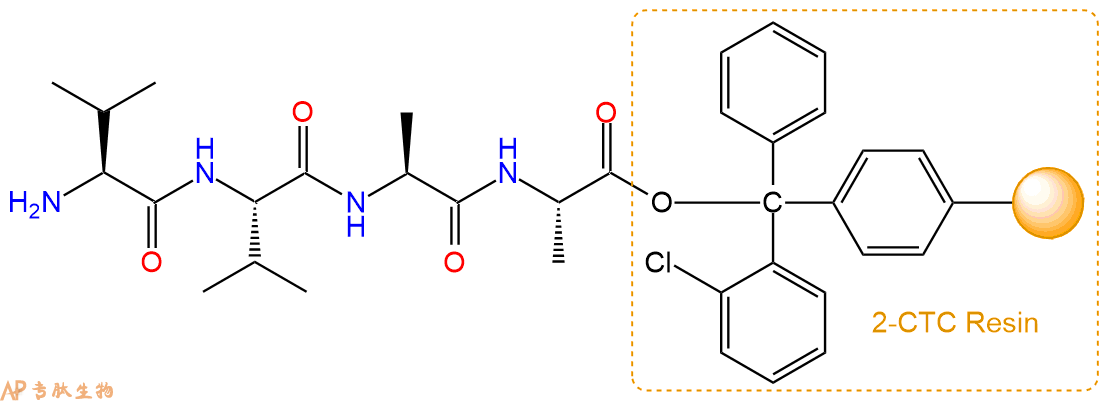 最后再经过步骤二得到 H2N-Val-Val-Ala-Ala-CTC Resin,结构如下: