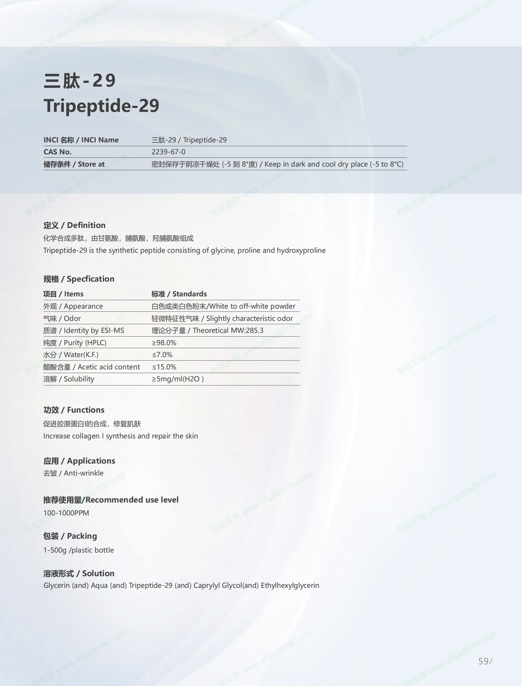 | 英文名: | Tripeptide-29、Collagen tripeptide |
