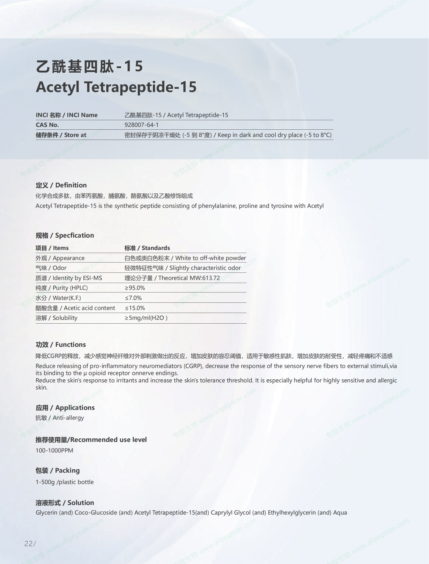 | 中文名称: | 乙酰基四肽-15 |