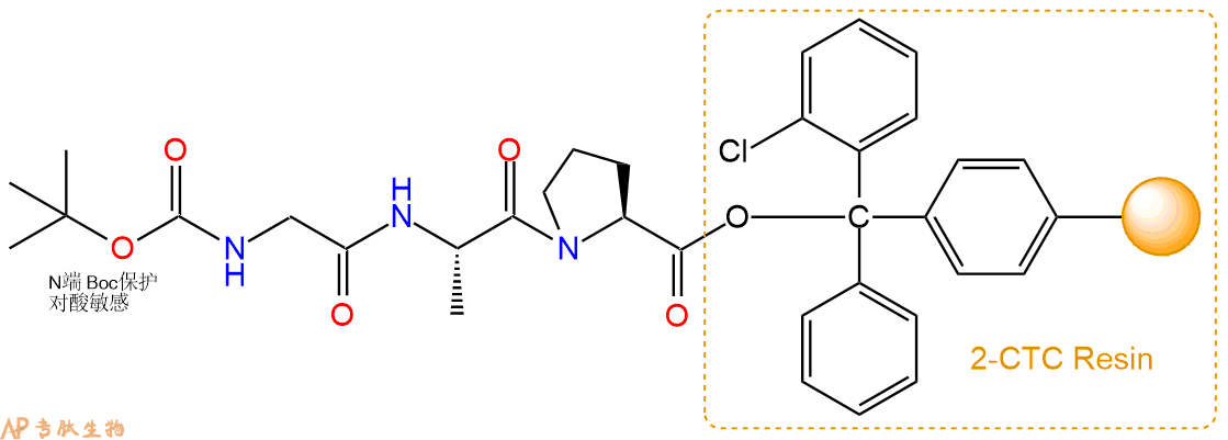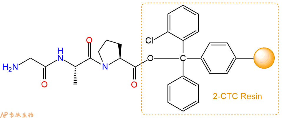 最后再经过步骤二得到 H2N-Gly-Ala-Pro-CTC Resin,结构如下:
