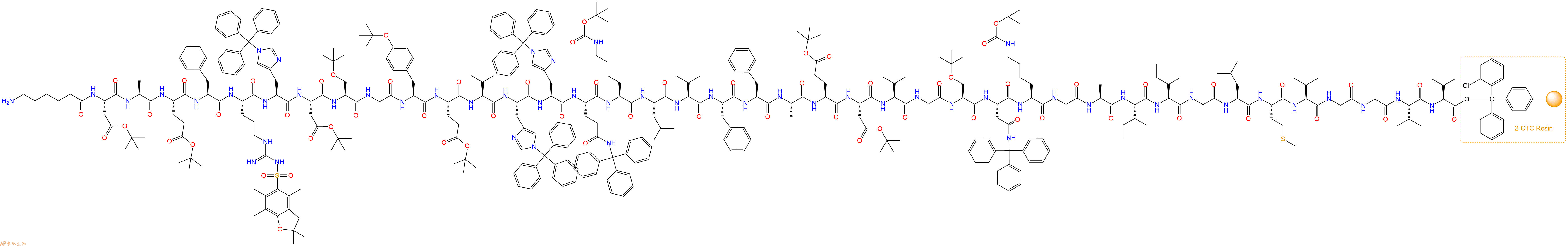 H2N-Arg(Pbf)-His(Trt)-Asp(OtBu)-Ser(tBu)-Gly-Tyr(tBu)-Glu(OtBu)-Val-His(Trt)-His(Trt)-Gln(Trt)-Lys(Boc)-Leu-Val-Phe-Phe-Ala-Glu(OtBu)-Asp(OtBu)-Val-Gly-Ser(tBu)-Asn(Trt)-Lys(Boc)-Gly-Ala-Ile-Ile-Gly-Leu-Met-Val-Gly-Gly-Val-Val-CTC Resin