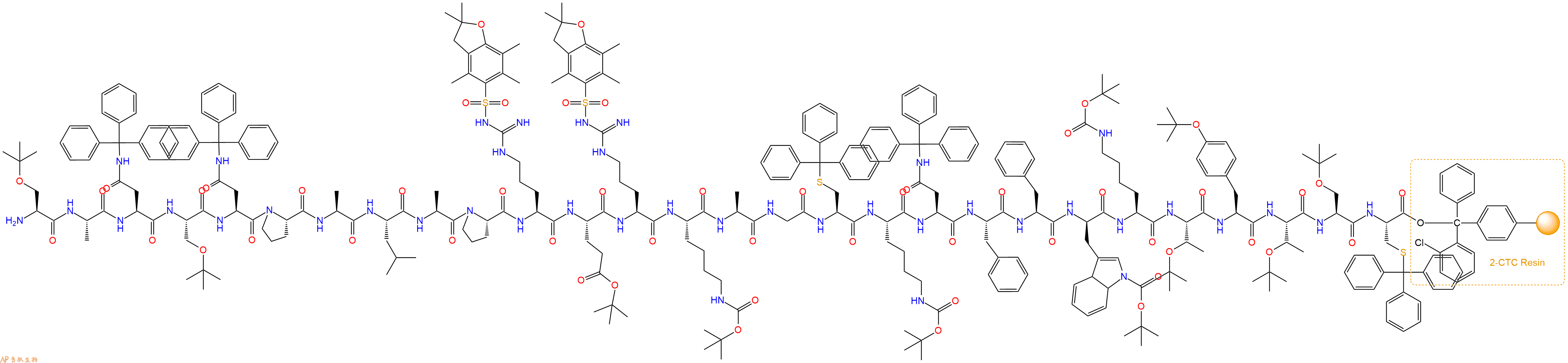 H2N-Asn(Trt)-Pro-Ala-Leu-Ala-Pro-Arg(Pbf)-Glu(OtBu)-Arg(Pbf)-Lys(Boc)-Ala-Gly-Cys(Trt)-Lys(Boc)-Asn(Trt)-Phe-Phe-DTrp(Boc)-Lys(Boc)-Thr(tBu)-Tyr(tBu)-Thr(tBu)-Ser(tBu)-Cys(Trt)-CTC Resin