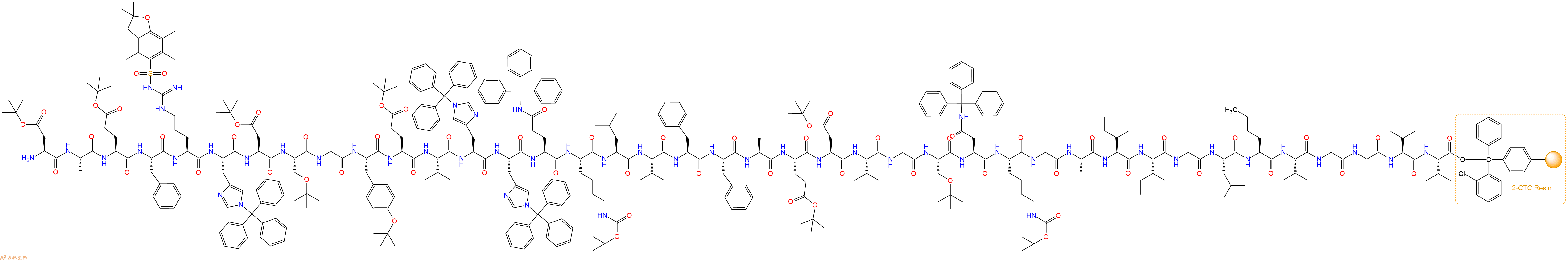 H2N-Arg(Pbf)-His(Trt)-Asp(OtBu)-Ser(tBu)-Gly-Tyr(tBu)-Glu(OtBu)-Val-His(Trt)-His(Trt)-Gln(Trt)-Lys(Boc)-Leu-Val-Phe-Phe-Ala-Glu(OtBu)-Asp(OtBu)-Val-Gly-Ser(tBu)-Asn(Trt)-Lys(Boc)-Gly-Ala-Ile-Ile-Gly-Leu-Nle-Val-Gly-Gly-Val-Val-CTC Resin